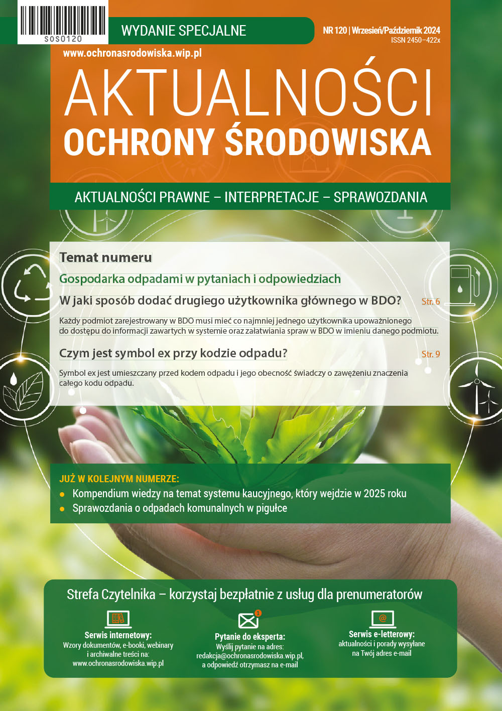 Oferujemy Ci unikalną możliwość pobrania PDF specjalnego wydania czasopisma "Aktualności Ochrony Środowiska", poświęconego w całości zagadnieniom gospodarki odpadami.